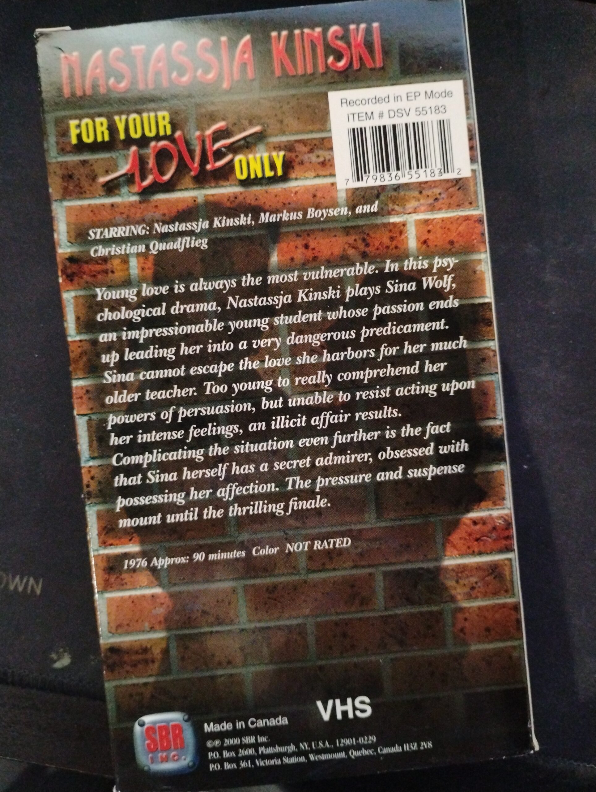 Young love is always the most vulnerable. In this psychological drama, Nastassja Kinski plays Sina Wolf, an impressionable young student whose passion ends up leading her into a very dangerous predicament. Sina cannot escape the love she harbors for her much older teacher. Too young to really comprehend her powers of persuasion, but unable to resist acting upon her intense feelings, an illicit affair results. Complicating the situation even further is the fact that Sina herself has a secret admirer, obsessed with possessing her affection. The pressure and suspense mount until the thrilling finale.
