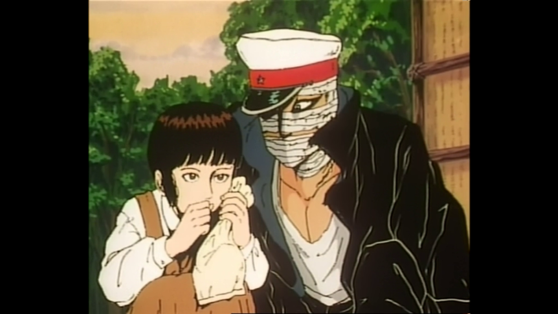 “Midori is super short, at around 49 minutes in length, so that helps its accessibility for people with shorter attention spans. The weird animation looks almost like Speed Racer at times, yet this was made in 1992—quite odd. Very old-looking, crude animation, much like some of the dark visuals to match, crude and brutal. Definitely NOT like Speed Racer on that front.” -